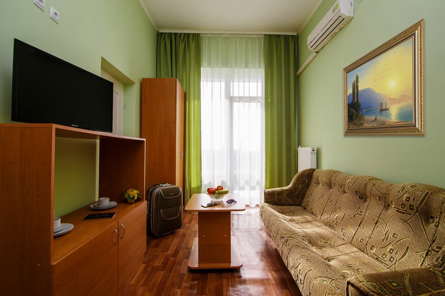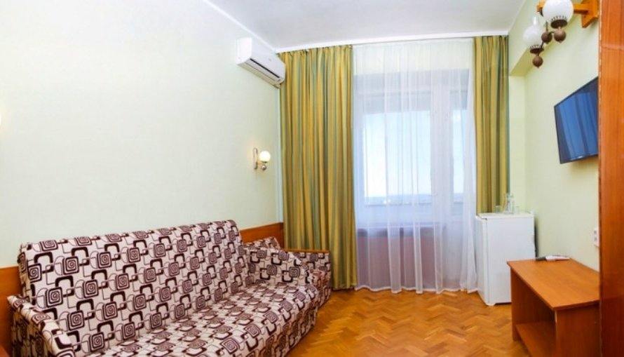 - 2-, 3-местный 2-комнатный Семейный. Площадь: 32 кв.м. В номере: спальня с двуспальной кроватью, гостиная с диваном, кондиционер, телевизор, холодильник, сейф, санузел с душевой кабиной, биде, балкон (вид на море или на парк).