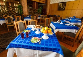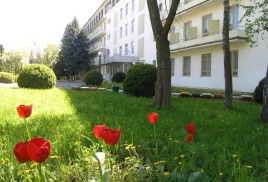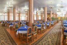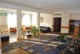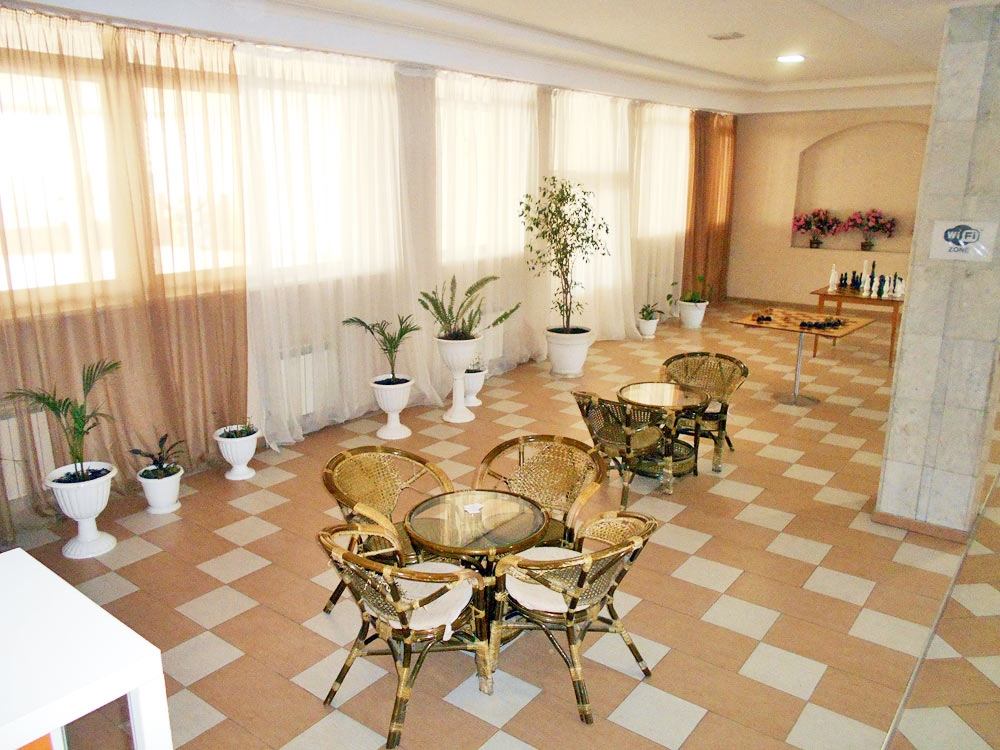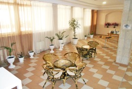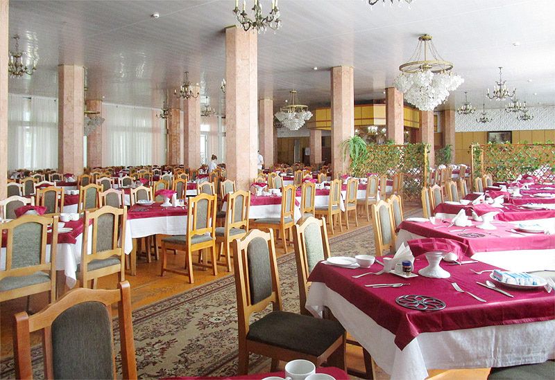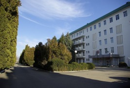 Здравница накопила колоссальный опыт по приему и обслуживанию гостей нашего курорта. Санаторий может одновременно принять 400 человек. Спальные корпуса соединены теплыми переходами с лечебным корпусом, столовой и клубом. На каждом этаже обустроены холлы с мягкой мебелью, телевизорами, пышной зеленью.