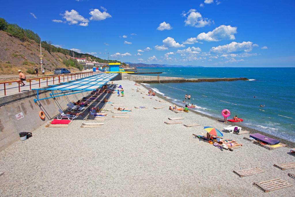 Пляж городской, галечный благоустроенный (лежаки, туалет, душевые, раздевалки), протяженностью 130м. Находится в 1800м от комплекса.