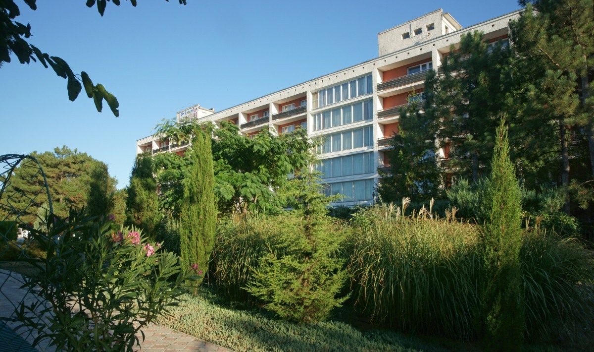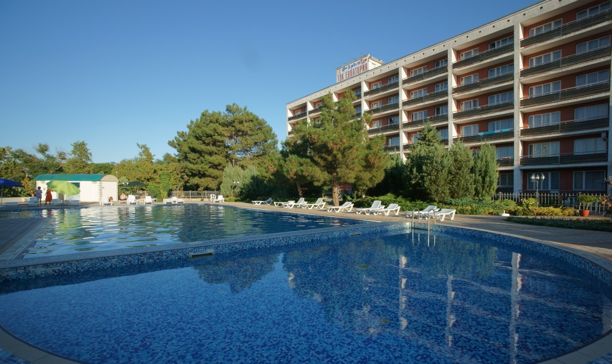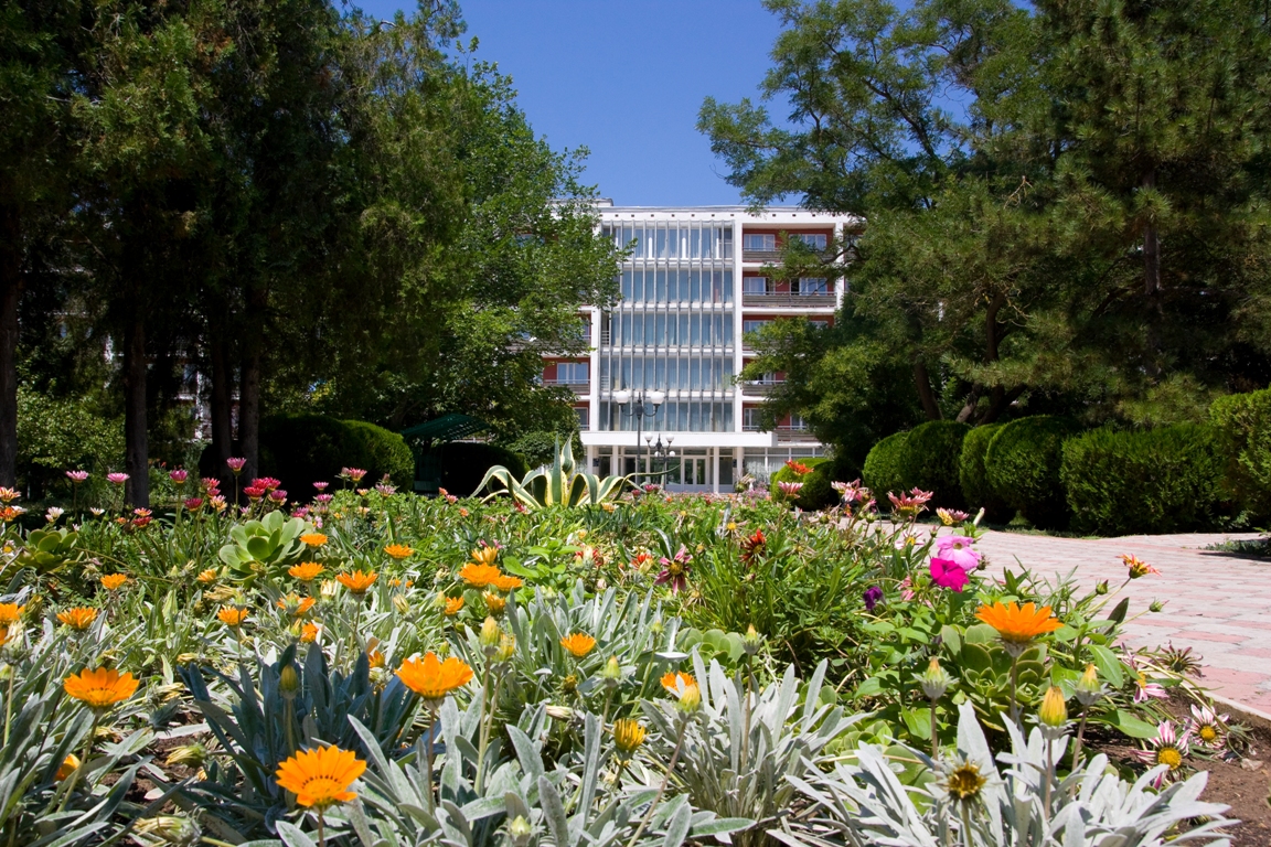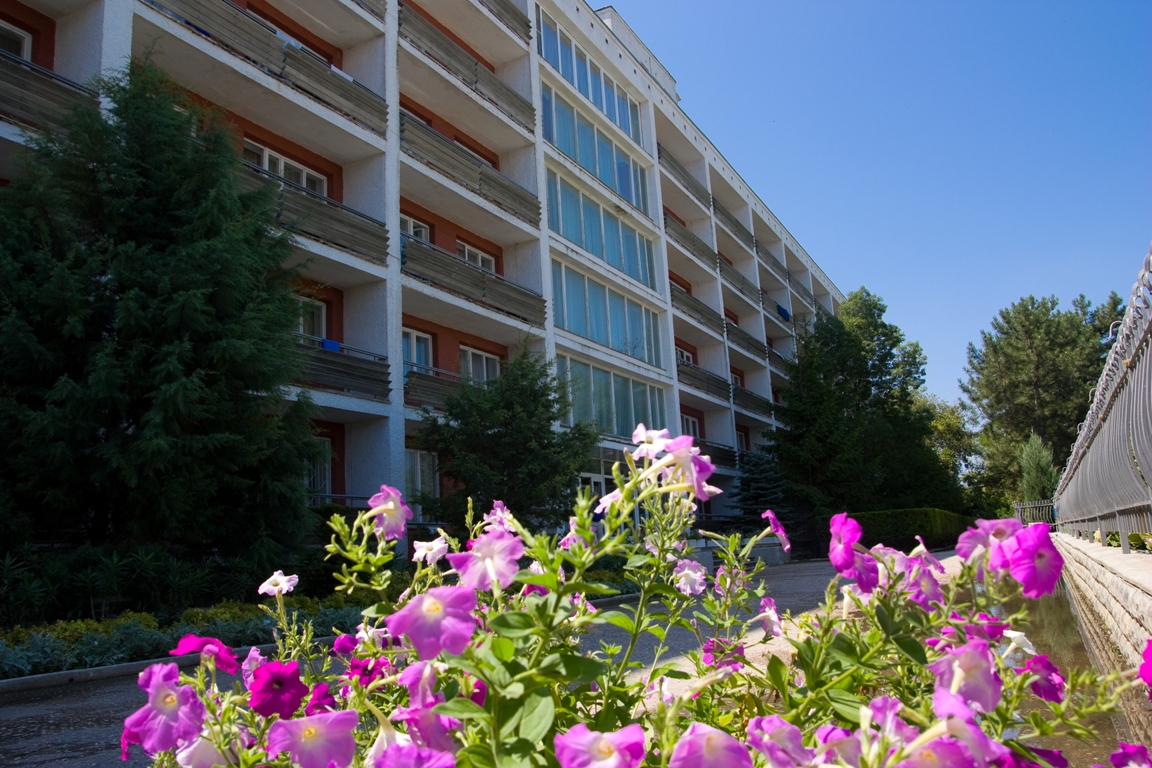 Комплекс состоит из шестиэтажного корпуса с великолепной парковой зоной на расстоянии 700 м от городского пляжа и центральной набережной, где расположены основные курортные развлечения. Одновременно здравница может принять 500 гостей.