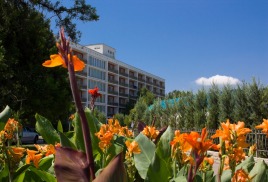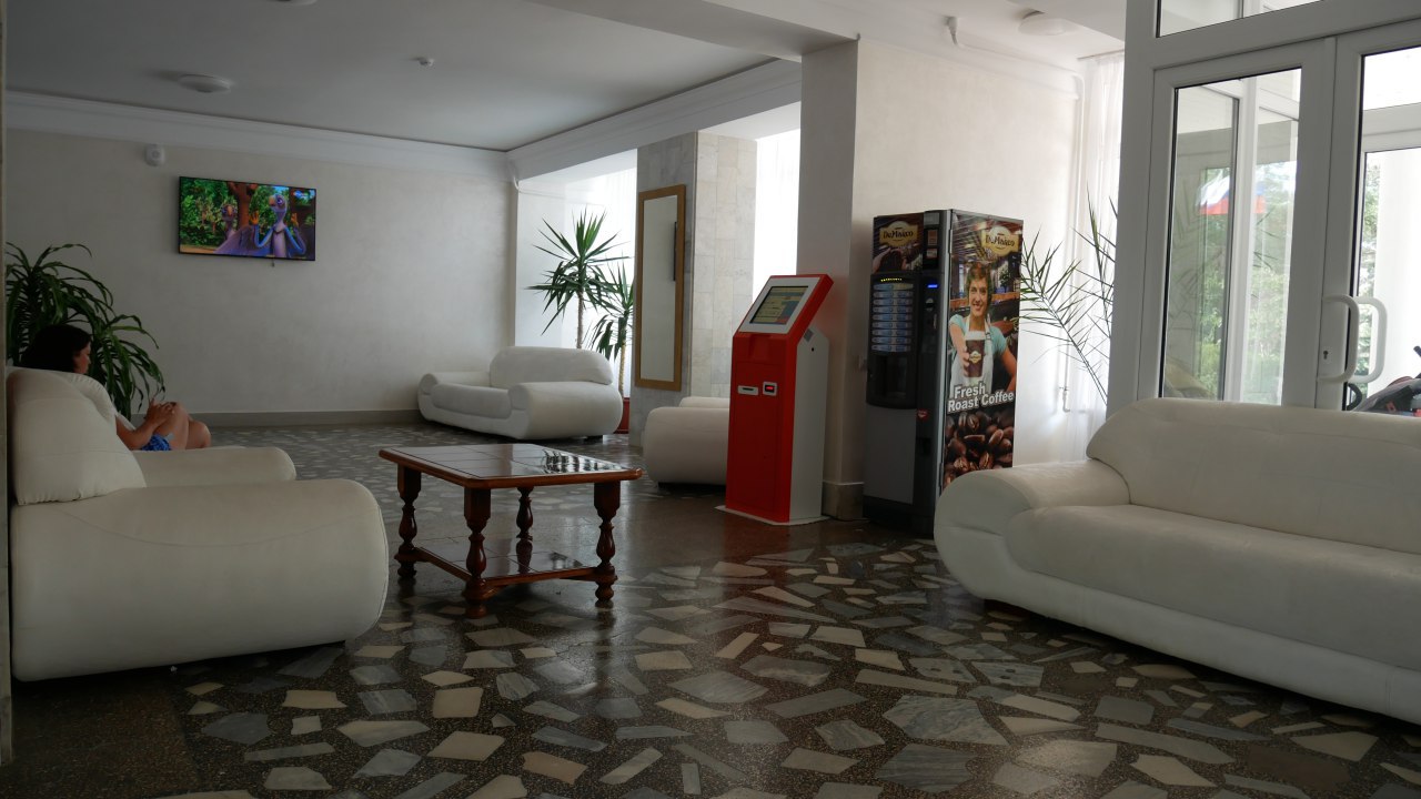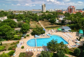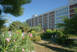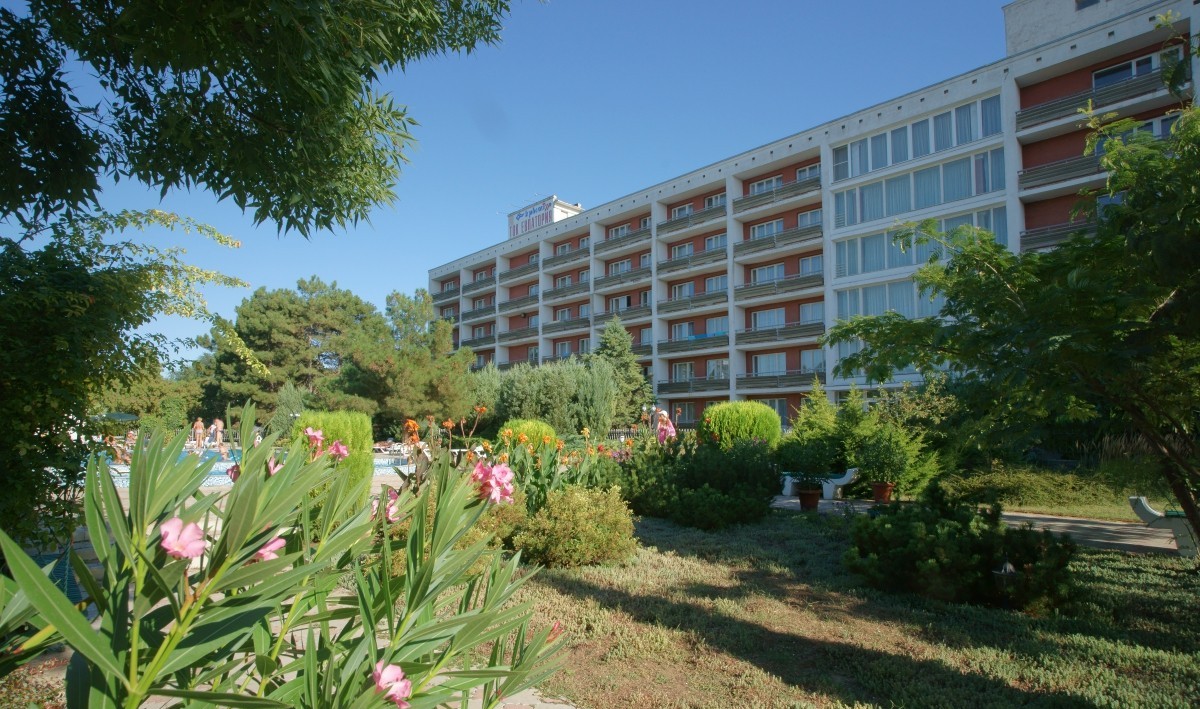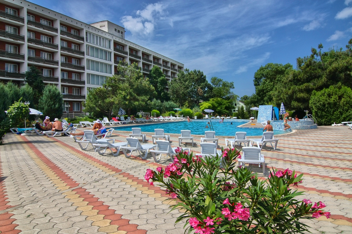 Комплекс состоит из шестиэтажного корпуса с великолепной парковой зоной на расстоянии 700 м от городского пляжа и центральной набережной, где расположены основные курортные развлечения. Одновременно здравница может принять 500 гостей.