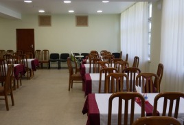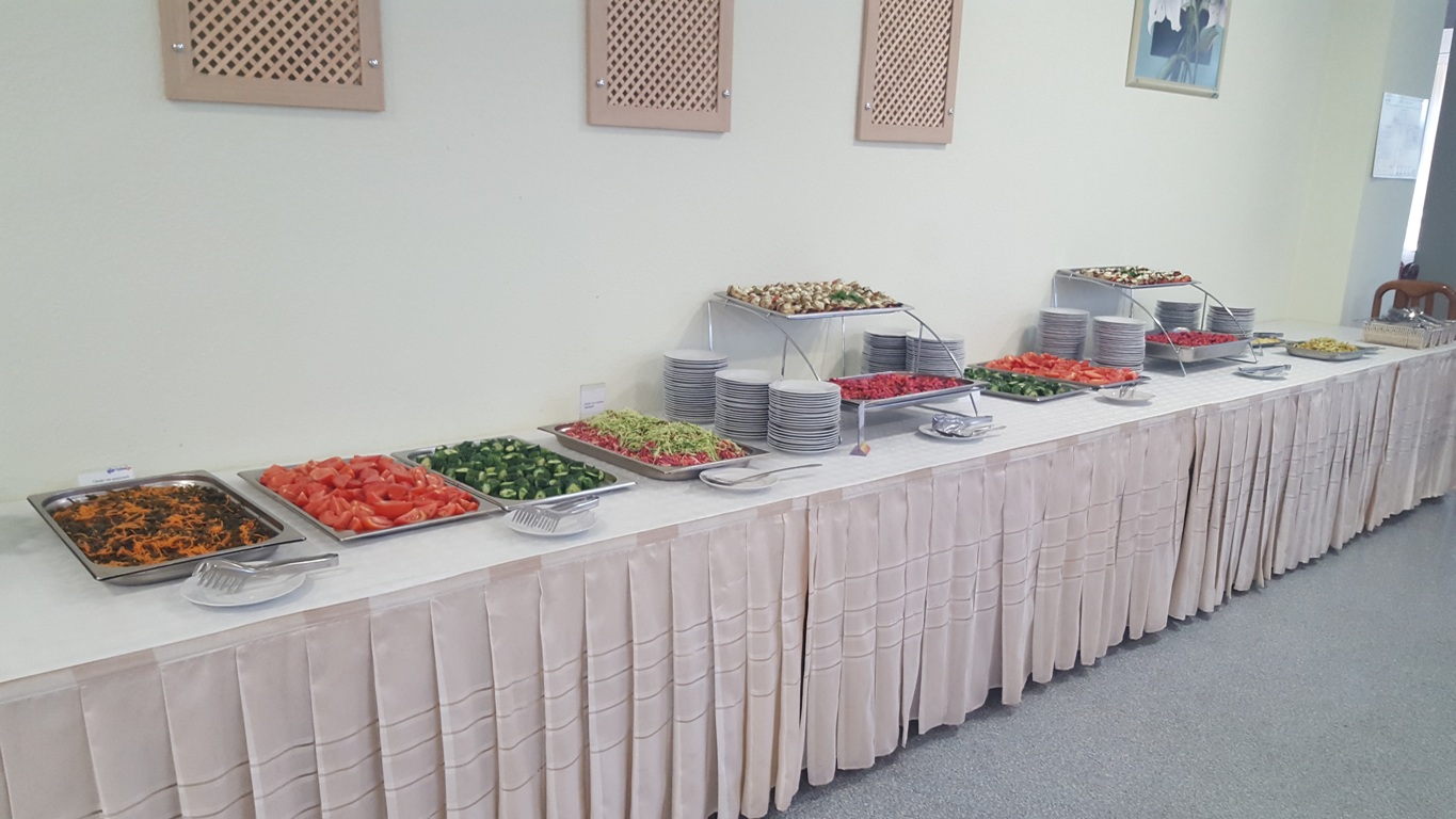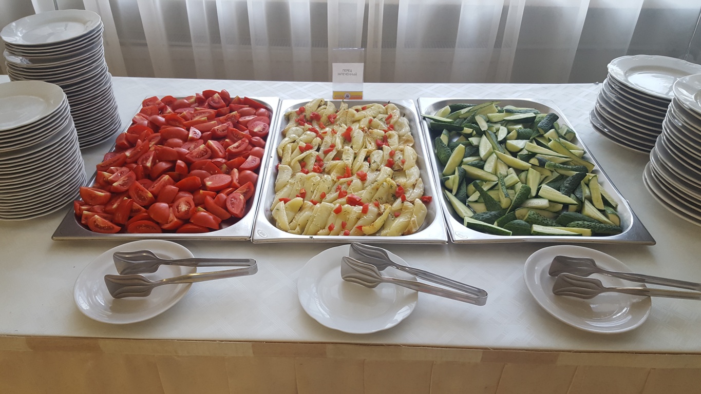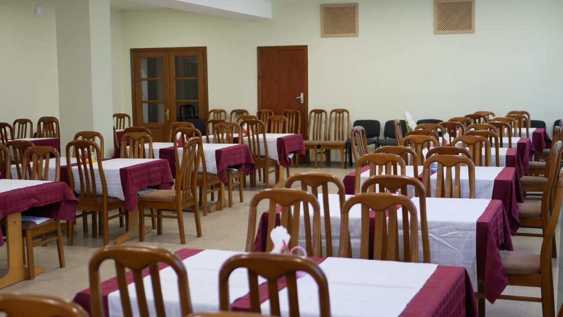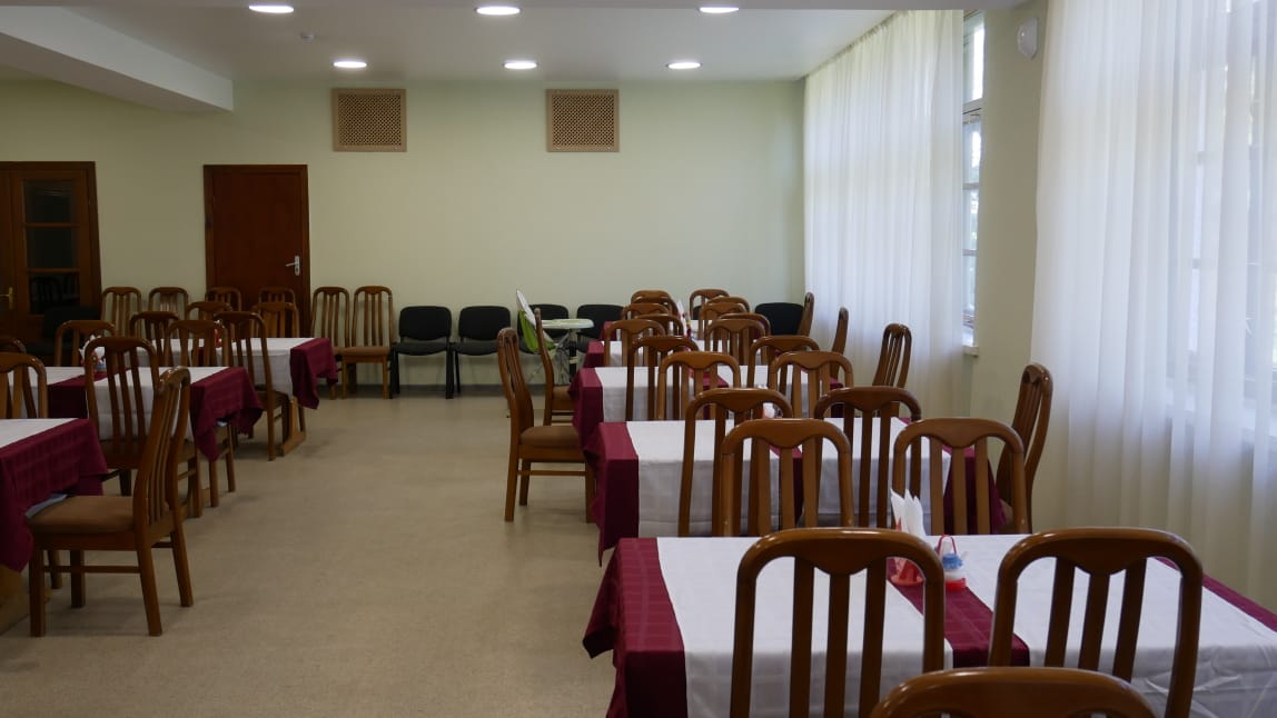 Обеденный зал кондиционирован, работает пропускная система по личным электронным карточкам.