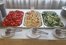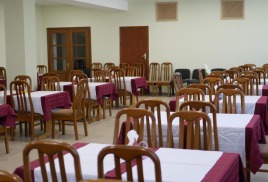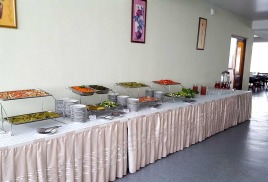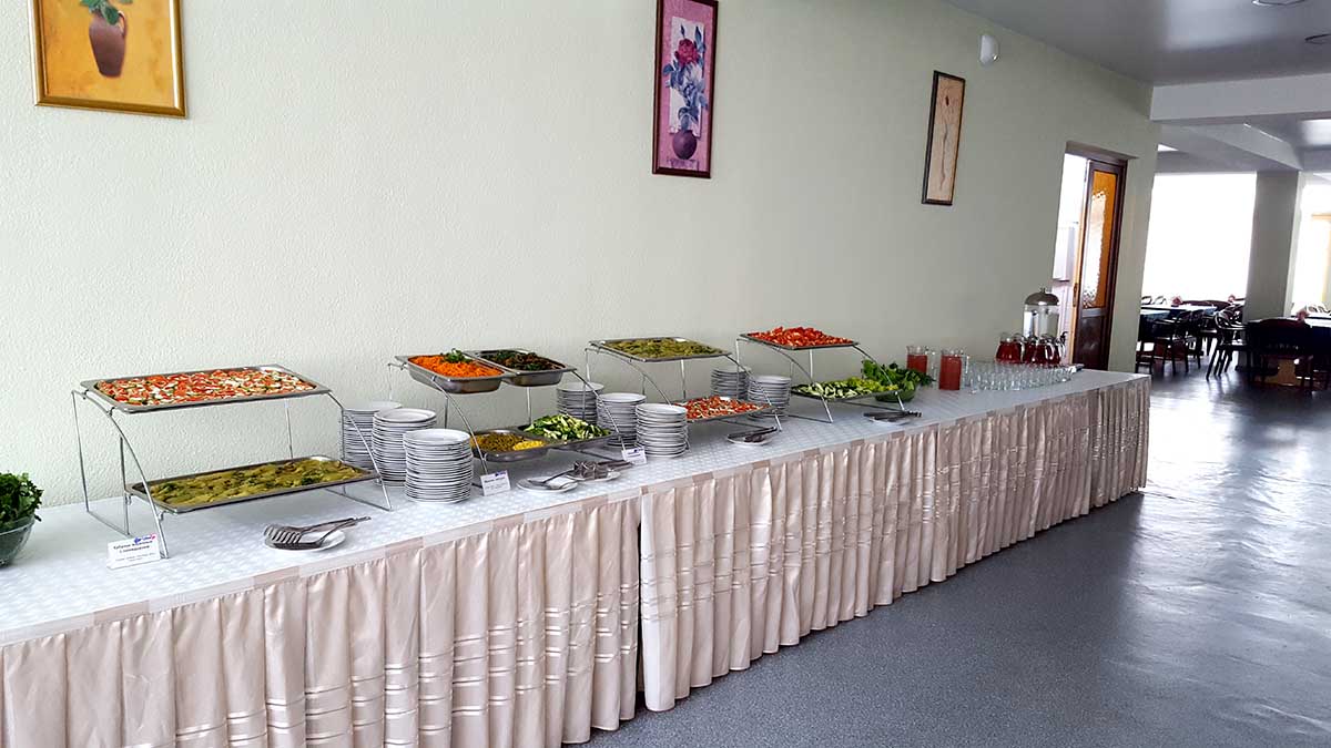 Кафе предлагает гостям комплекса 2- или 3-разовое питание по системе «шведский стол». Кухня комплекса не только полезная, но и вкусная: супы, горячие и холодные блюда, десерты, напитки приготовлены настоящими мастерами своего дела. Изысканный шведский стол включён в стоимость путевки и предусмотрен для всех категорий номеров.