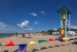 - Песчаный пляж, оборудованным шезлонгами, кабинками для переодевания, медицинским пунктом.