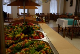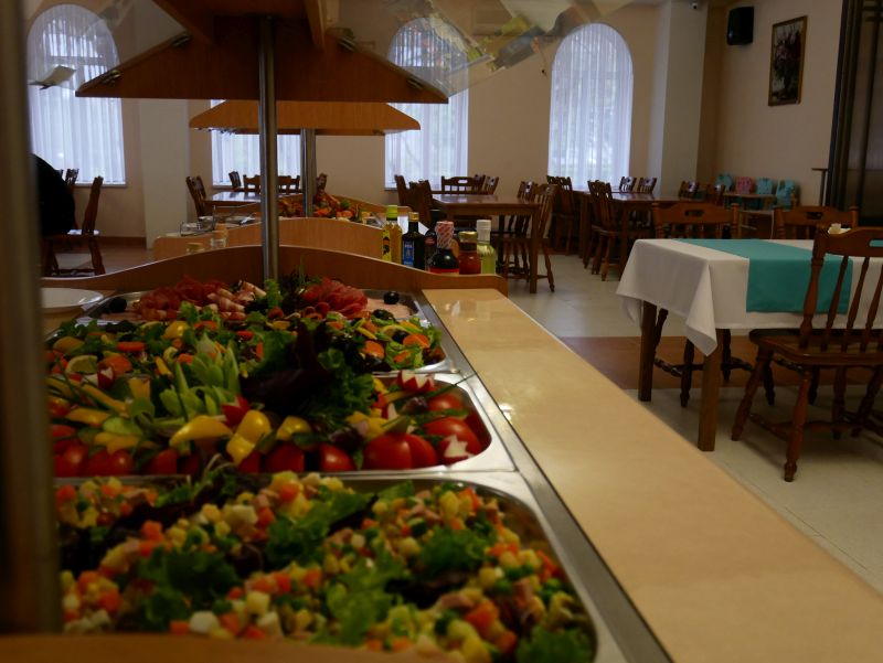 Обеденный зал кондиционирован, работает пропускная система по личным электронным карточкам.