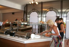 Питание "Все включено": питание по системе «шведский стол» на протяжении всего дня с 07:30 до 20:00: завтрак плавно переходящий в обед, обед плавно переходящий в ужин, с постепенной сменой ассортимента предлагаемых блюд, безалкогольные напитки: чай, кофе, компот, каркаде, лимонад, алкогольные напитки: игристый напиток, красное и белое вино, пиво (с 11:00).