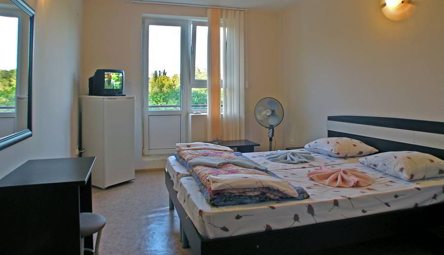 - 2-х местный 1-но комнатный номер с удобствами (18м2) (макс.2+1). В номере: душ, санузел, кондиционер, ТВ, холодильник, две раздельные кровати, балкон с видом на горы или на море,Wi-Fi. Дополнительное место – евро раскладушка.