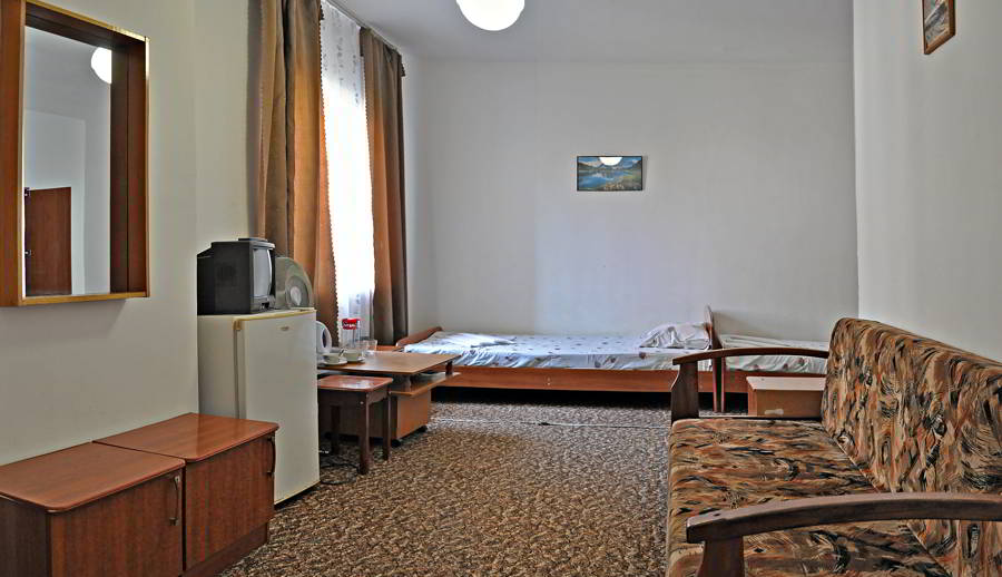 - 2-х местный 1-но комнатный номер с удобствами (20-26м2) (макс.2+2). В номере: душ, санузел, ТВ, холодильник, сплит-система, две раздельные или одна двуспальная кровать,Wi-Fi. Дополнительное место – евро раскладушка или диван.