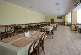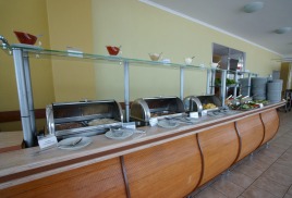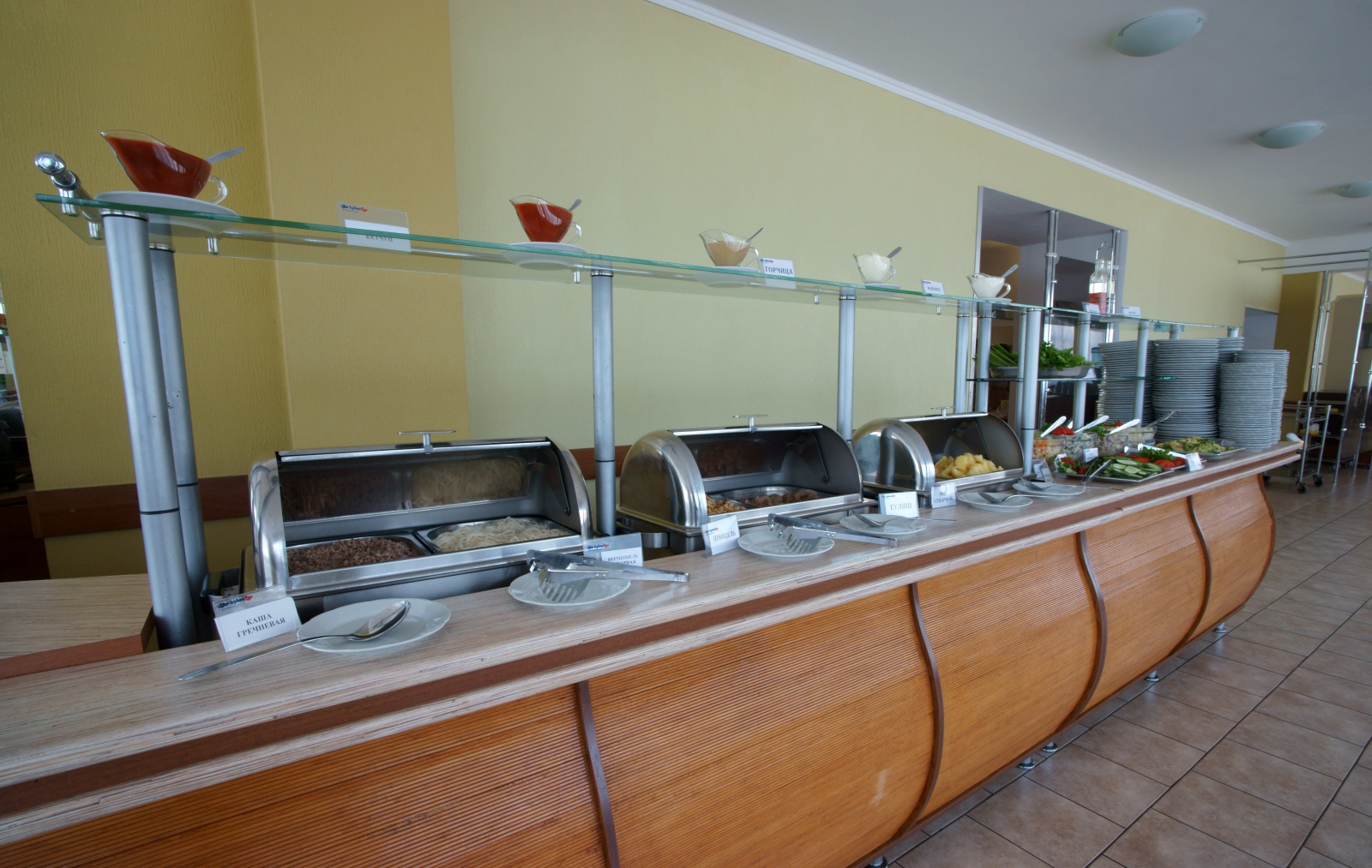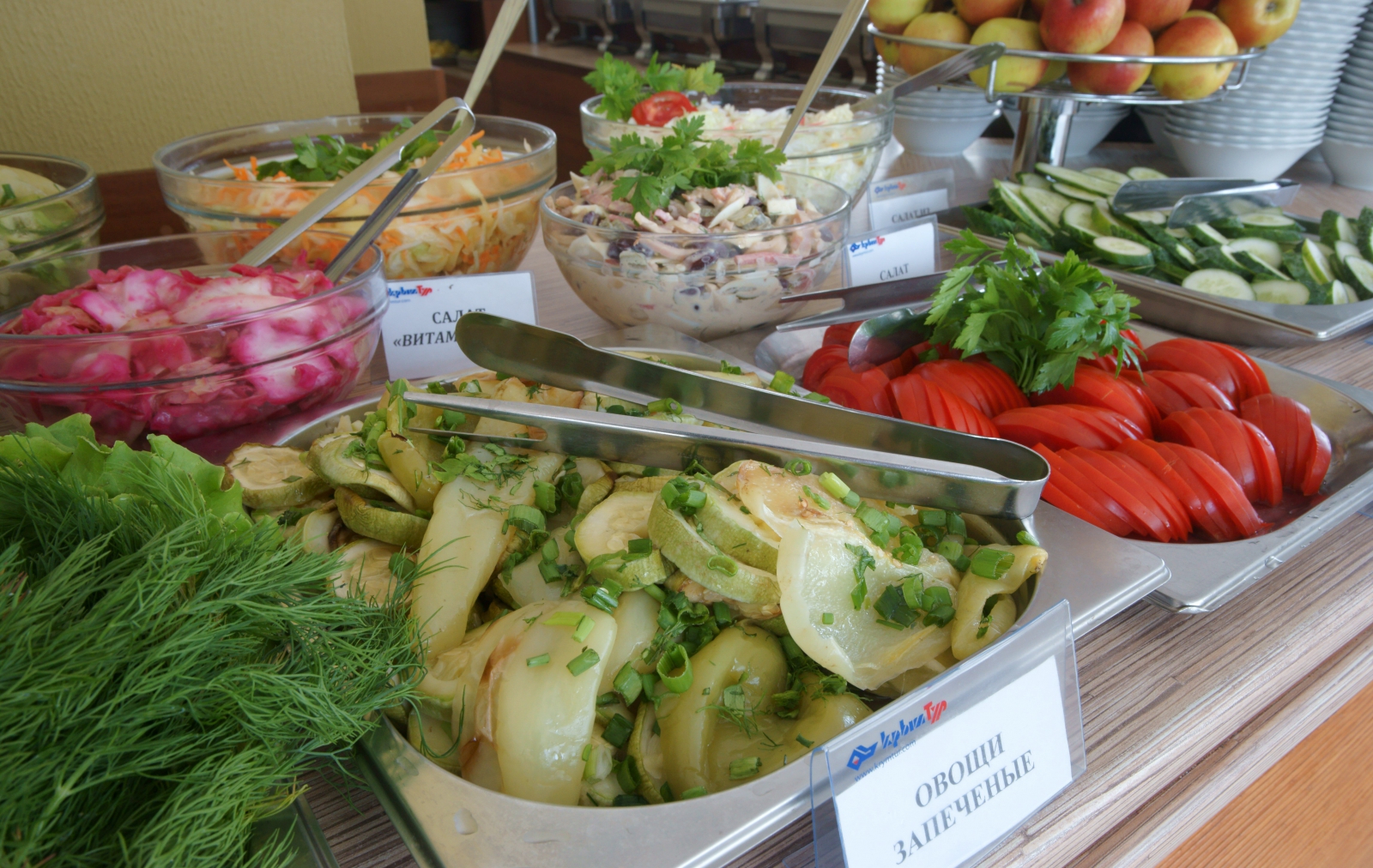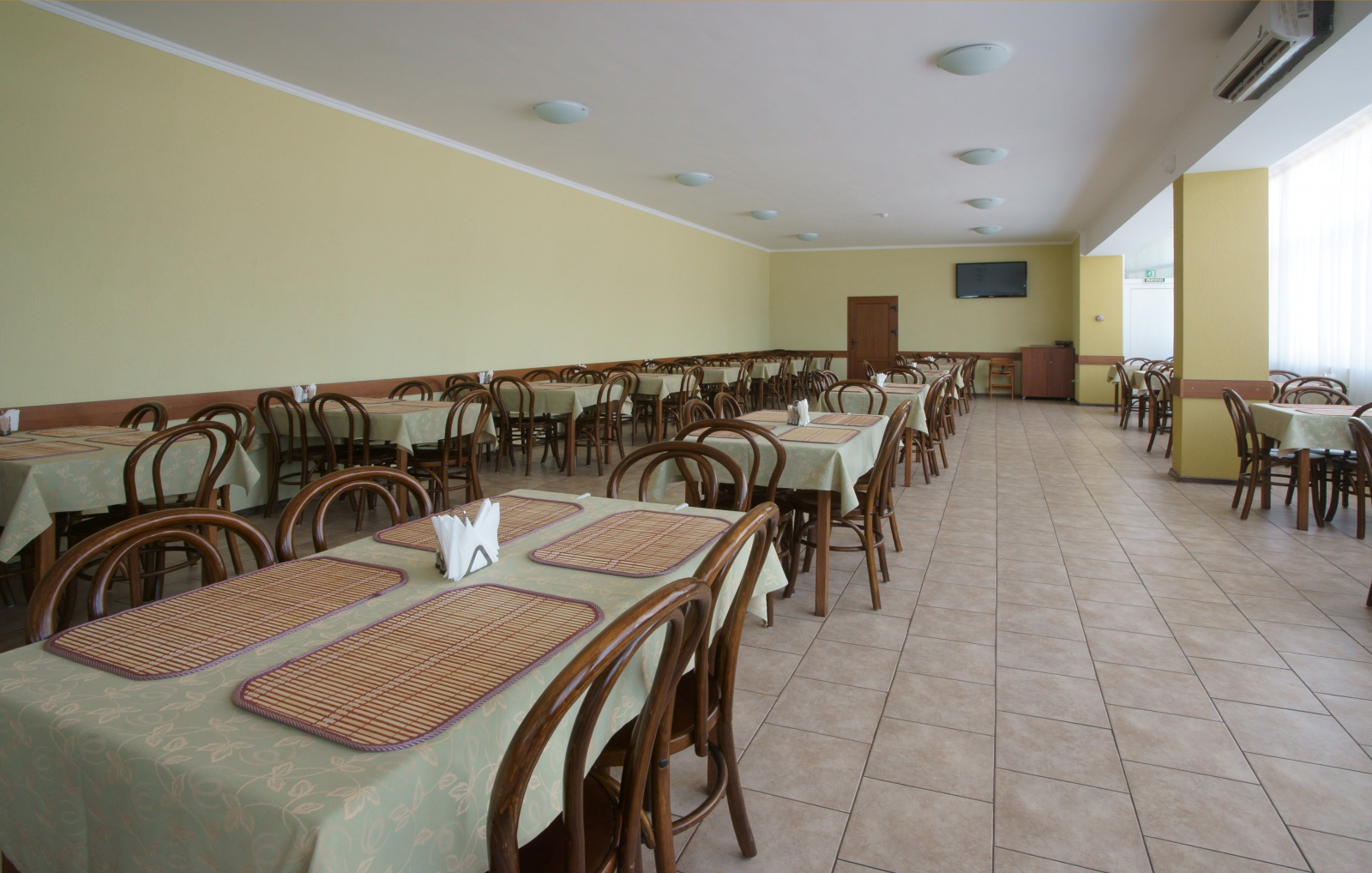 Обеденный зал кондиционирован, работает пропускная система по личным электронным карточкам.