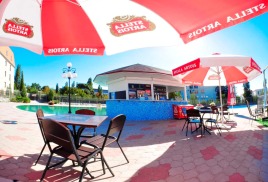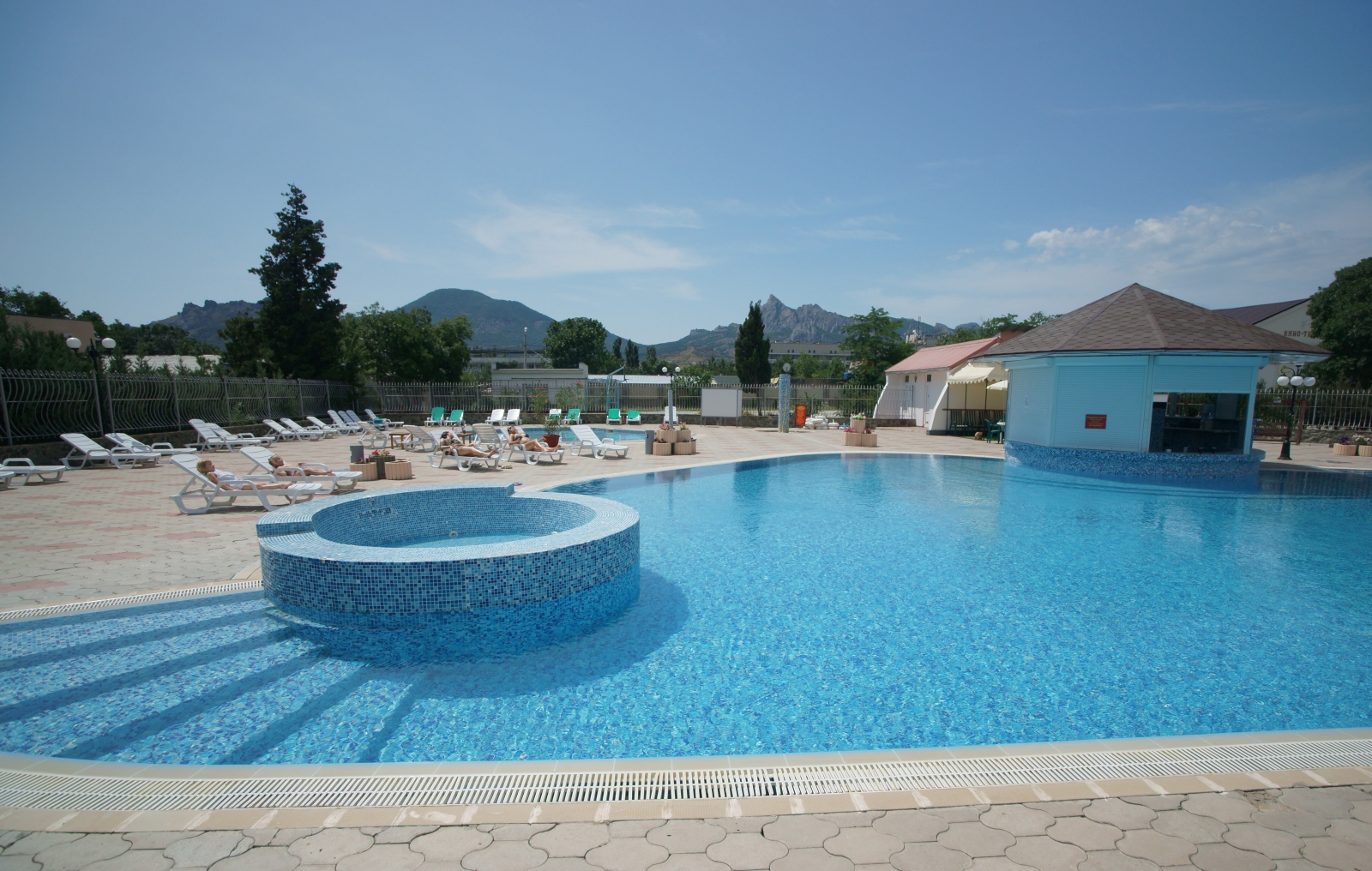 Пляж закрытого типа, собственный, мелкогалечный в 50 метров от туристического комплекса, протяженность 240 метров.