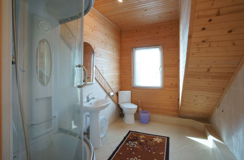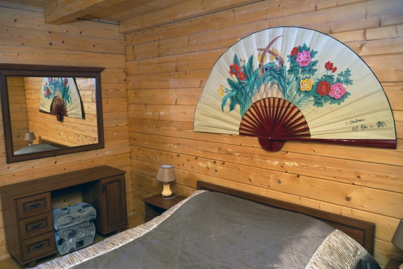 На первой береговой линии находятся пять деревянных двухэтажных коттеджей, в каждом из них на 1 этаже находится 3-комнатный номер люкс, на втором этаже 2-комнатный номер люкс. В одном коттедже есть два однокомнатных номера люкс (на первом и втором этаже) с отдельными входами.