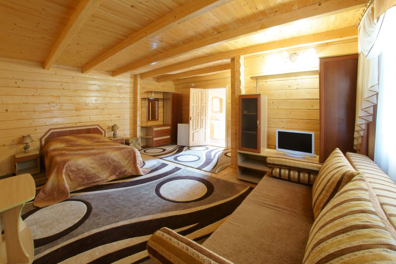 - 2-местный 3-комнатный номер (1 этаж). В номере: спальня с двуспальной кроватью, две комнаты с диванами, холодильник, телевизор, кондиционер, утюг, гладильная доска, фен, набор посуды, санузел с душевой кабиной, терраса.