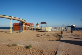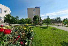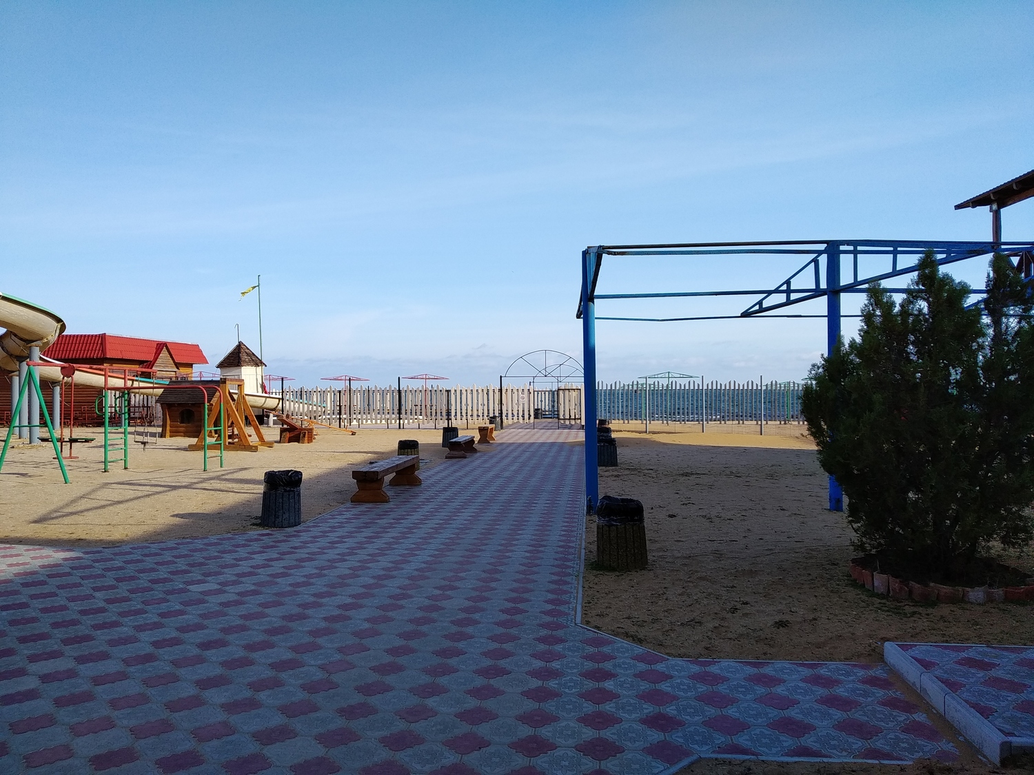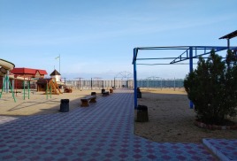 Пляж собственный песчаный, оборудованный навесом. К Вашим услугам летнее кафе, водная горка, пляжные зонты, прокат шезлонгов. Расстояние до моря около 50 метров.