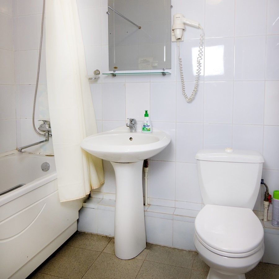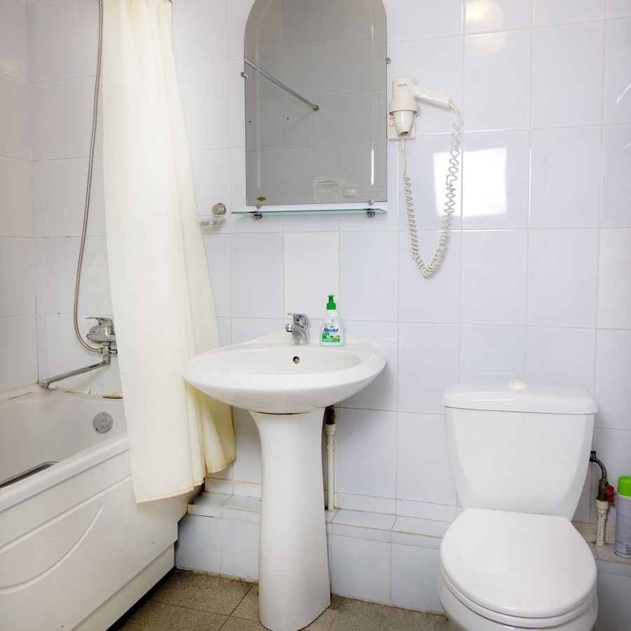 5-этажный спальный корпус с лифтом соединен теплыми переходами со столовой и лечебным корпусом.
