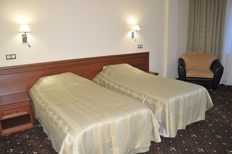 - 1-но местный стандартный номер. Площадь номера, кв.м: 16. В номере: 2-х спальная кровать, душ, туалет, фен, ТВ, мини-холодильник, кондиционер, электрочайник, телефон, сейф, Wi-Fi.Доп. место не ставится.