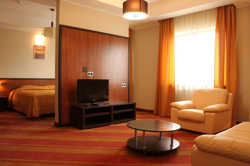 - 2-х местный 2-х комнатный люкс.Площадь номера, кв.м: 30,9. В номере: 2-х спальная кровать, душ, туалет, фен, набор полотенец, ТВ, мини-холодильник, кондиционер, телефон, сейф. Доп. место - диван.