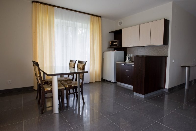 6-ти этажный корпус, есть лифт. Переход между корпусами: нет. Корпуса разделяет трасса М1 (Минск-Брест), под которой проходит подземный переход. В корпусе: финская сауна, турецкая баня, бассейн, конференц-зал, ресторан, боулинг, бильярд.