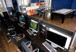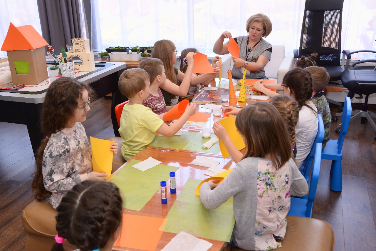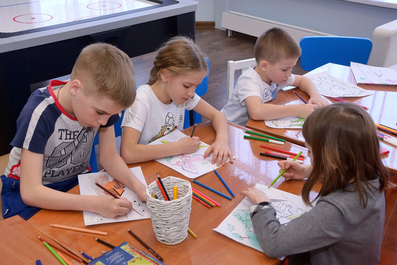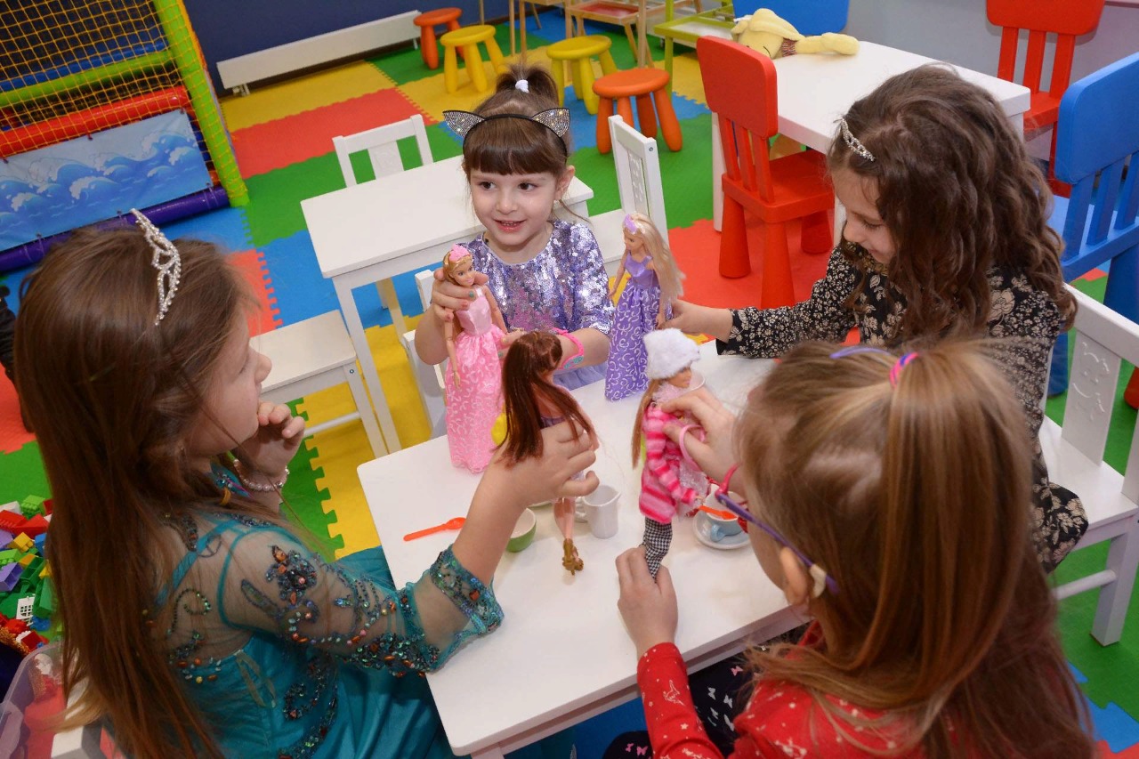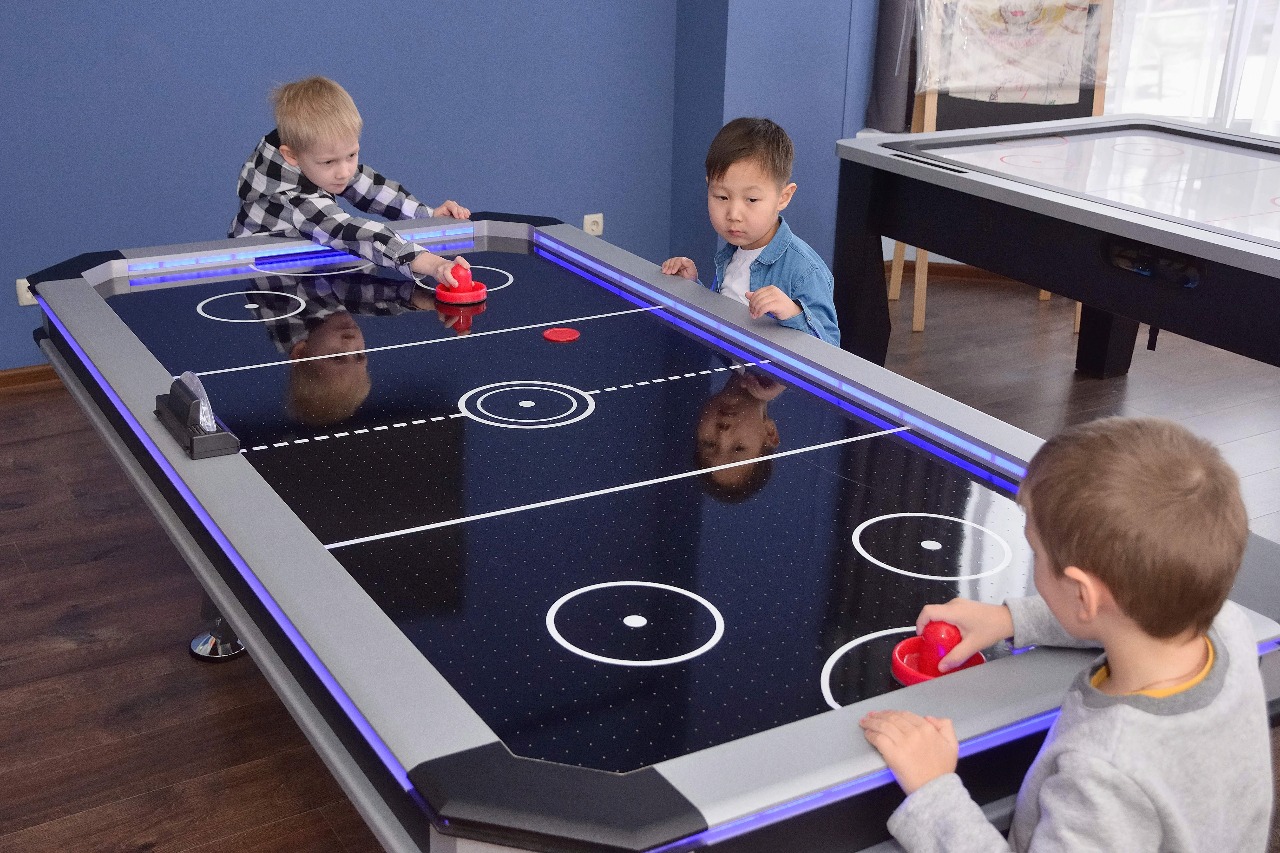 Игровой лабиринт с воздушным бассейном и батутом, аэрохоккей, настольный бильярд и теннис, шахматы, компьютеры, телевизоры с обучающими программами и мультфильмами, море игрушек, развивающие игры, уголок для занятий рисованием и лепкой – занятие по душе в центре найдет любой ребенок.