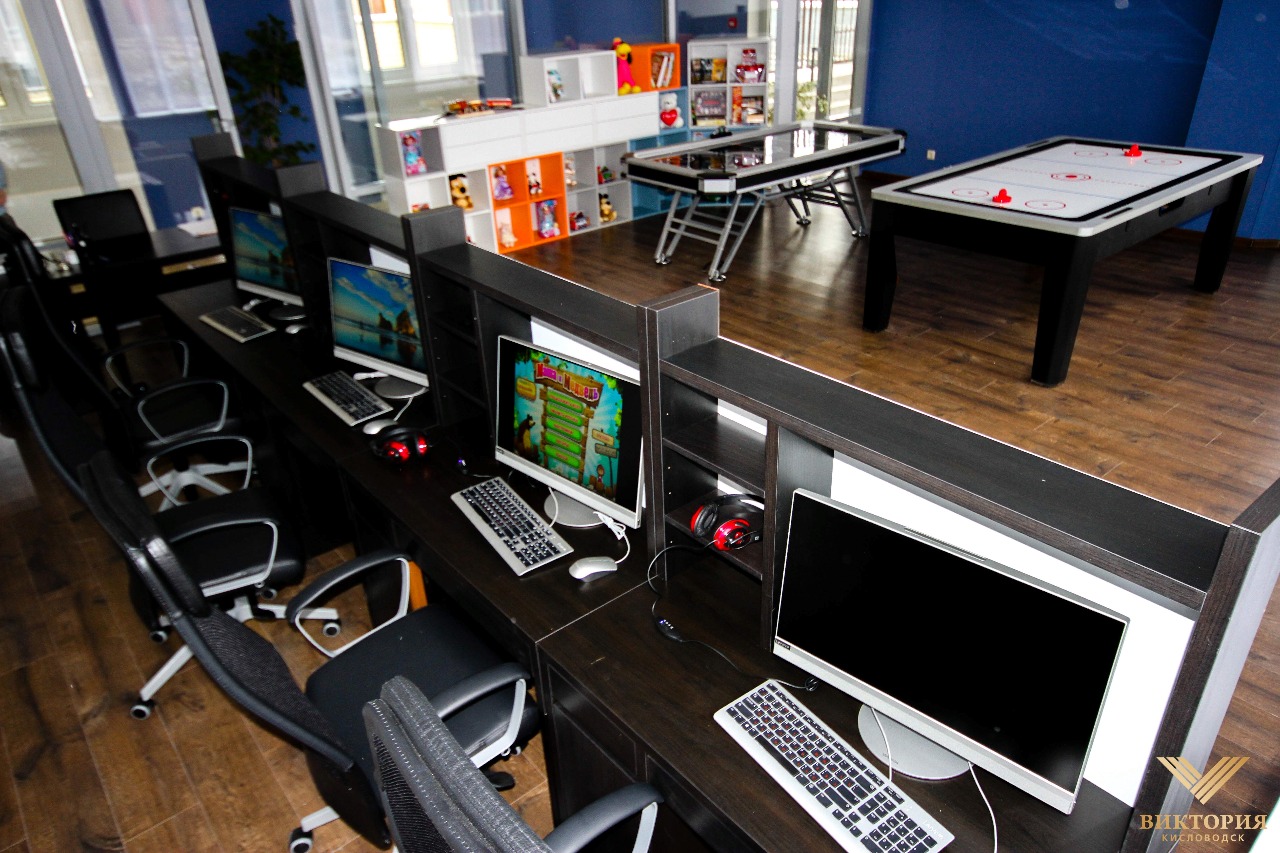 Две современные игровые комнаты для разных возрастных групп (малыши и подростки). Дети с 3 до 5 лет могут посещать комнату только в присутствии родителей или законных представителей.