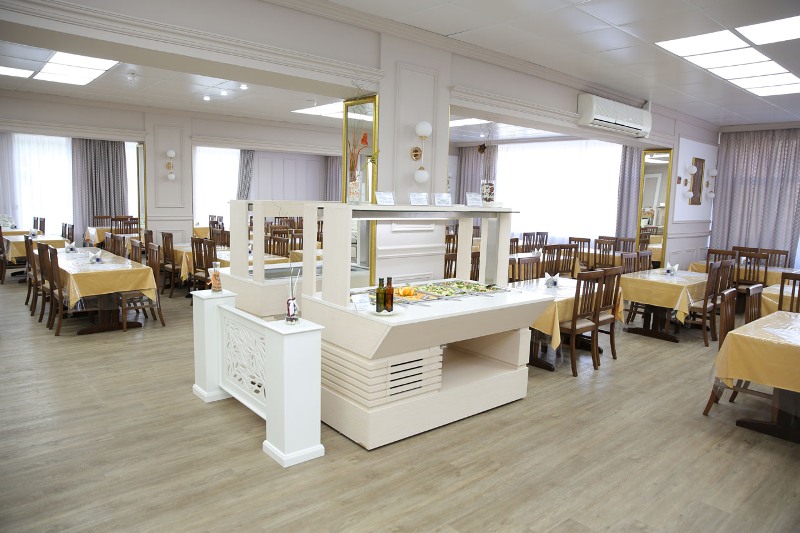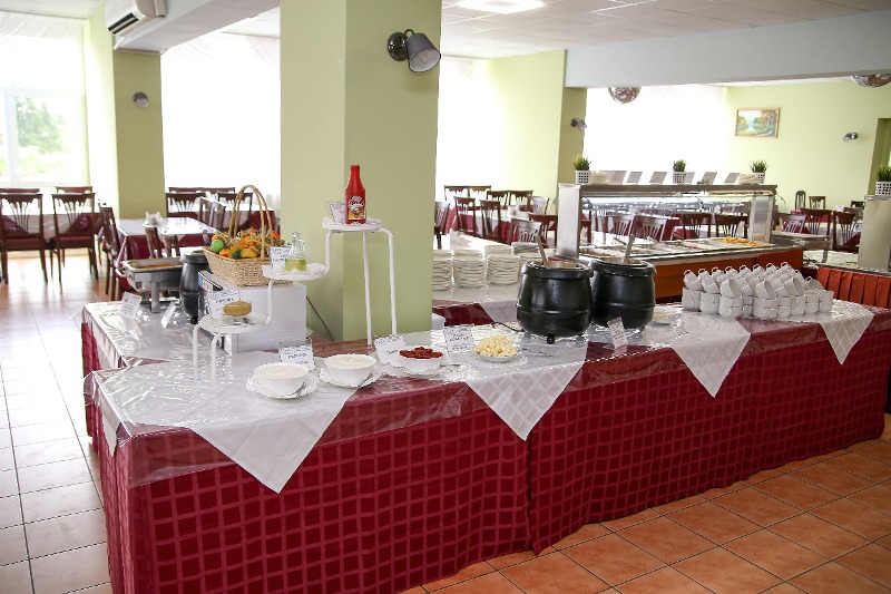Питание по системе «Шведский стол» — трехразовое (завтрак, обед, ужин + во время ужина выдача молочнокислого продукта — кефир или йогурт). Организовано в уютных залах столовой-ресторана по утвержденному недельному меню. На «шведской линии» предусмотрен выбор блюд (холодные закуски, горячие блюда, «сладкий стол», напитки, фруктовая нарезка) по различным диетам: ОВД, ЩВД, НКД. Для отдыхающих эндокринологического профиля предусмотрено дробное питание. Врачом назначается данная диета, с соответствующей отметкой в санаторно-курортной книжке. Также отдыхающие проходят беседу с диетической сестрой.