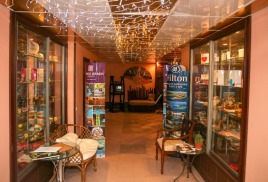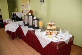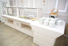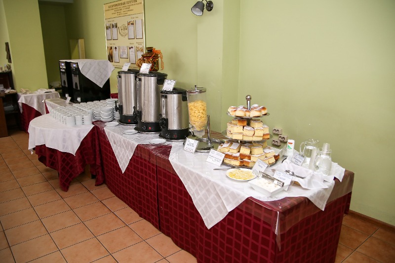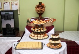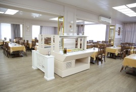 Предлагает легкие закуски, свежевыжатые фреши. Вы можете выпить чашечку свежесваренного натурального кофе или ароматного чая с выпечкой собственного производства кондитера санатория.