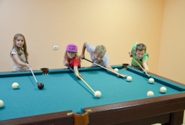 Семьи по достоинству оценят площадку для подвижных игр, детскую комнату с игрушками и настольными играми, бассейн, возможность просмотра мультфильмов. Благодаря конкурсам и анимационным программам детям некогда будет скучать. Разнообразный досуг в санатории позволит поправить здоровье и возвратиться домой в приподнятом настроении.