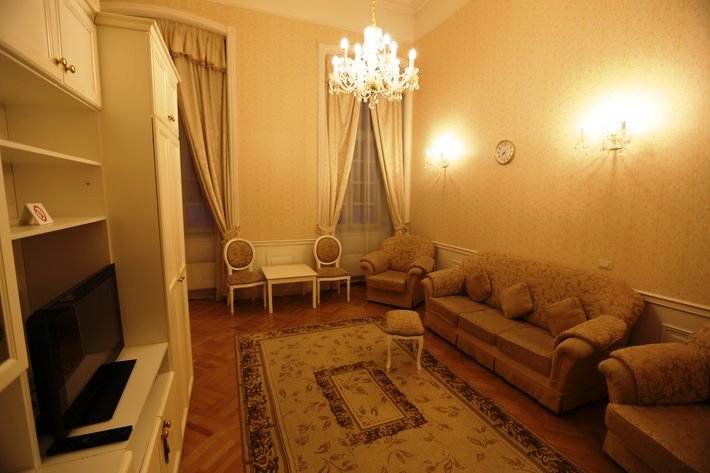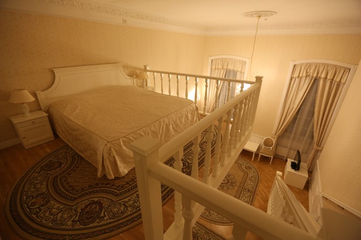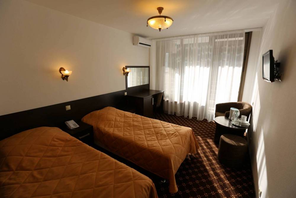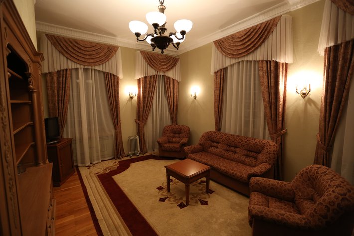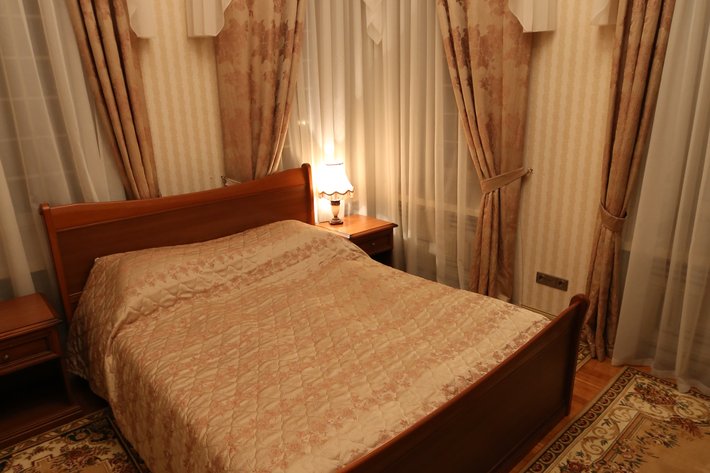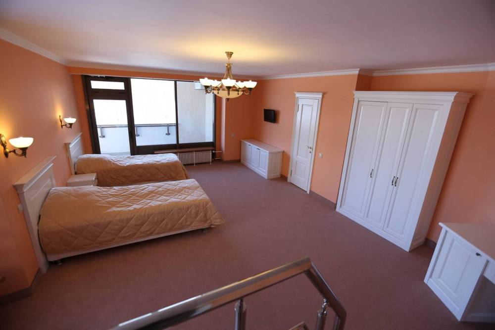 - 2-х местный 3-х комнатный номер Люкс 1 категории. В номере: ванна или душевая кабина, биде, туалет, фен, ТВ, музыкальный центр, холодильник, электрочайник, кондиционер, телефон, балкон;
