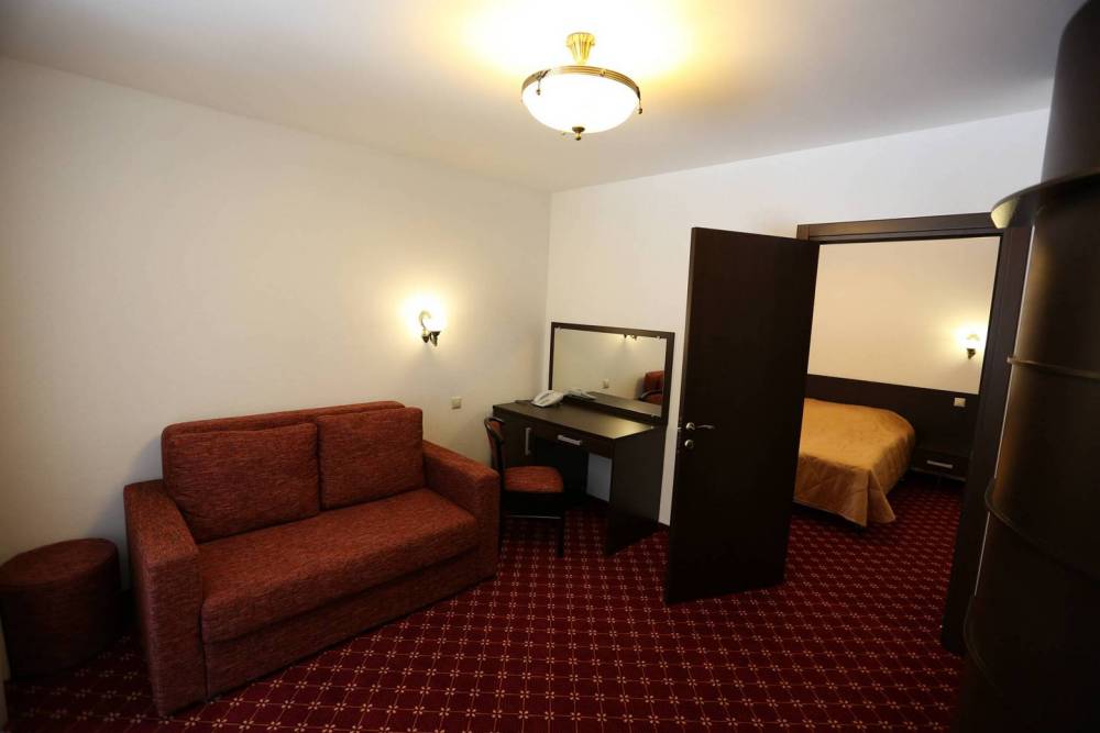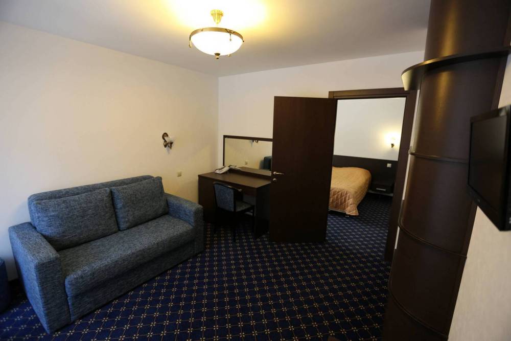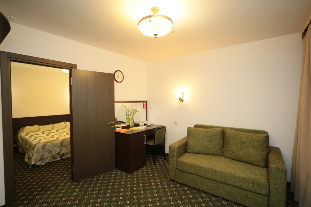 - 2-х местный 2-х комнатный номер Полулюкс. В номере: гидромассажная ванна, туалет, фен, ТВ, мини-бар, кондиционер, телефон, балкон;