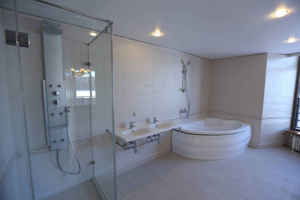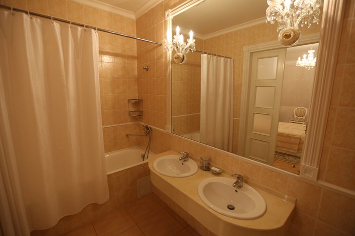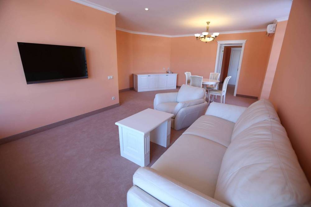 - 4-х местный 3-х комнатный номер Люкс. В номере: гидромассажная ванна, душевая кабина, туалет, фен, ТВ, мини-бар, кондиционер, телефон, балкон.