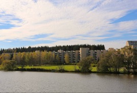 Главный 1-й корпус санатория был построен в 1974 году в стиле советского модернизма по проекту известных советских архитекторов И. З. Чернявского и И. А. Василевского. В 2013 г. после полной масштабной реконструкции корпус вновь был открыт для отдыхающих. Здесь расположены 234 комфортабельных номера различных категорий в который на основных местах может разместиться 415 человек (максимальная вместимость корпуса при дополнительном подселении составляет 535 человек). Из окон первого корпуса открывается красивый вид на озеро или на лес. Корпус представляет собой, по сути, замкнутый жилой микрорайон, с полным набором необходимой инфраструктуры. Здесь размещаются: служба приема и размещения, столовый зал, 2 бара, торговый павильон, парикмахерская, кабинет маникюра-педикюра, киноконцертный зал на 709 мест, библиотека с читальным залом, детская игровая комната, спортзал, два тренажерных зала, зал для настольного тенниса, бильярд (2 стола русского бильярда, 1 пул), 2 конференц-зала, 2 переговорных зала, бассейн с двумя саунами (с купелями). Корпус 1 оснащен лифтами и соединен внутренним переходом с медицинским центром.