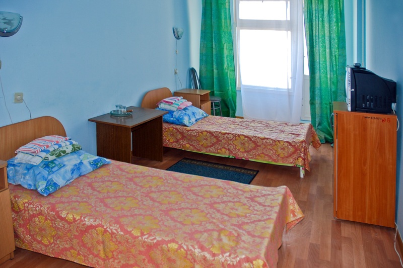 2-х местный стандарт. Площадь: 14 кв. м. В номере: две односпальные кровати, телевизор, холодильник, санузел с душем, балкон.