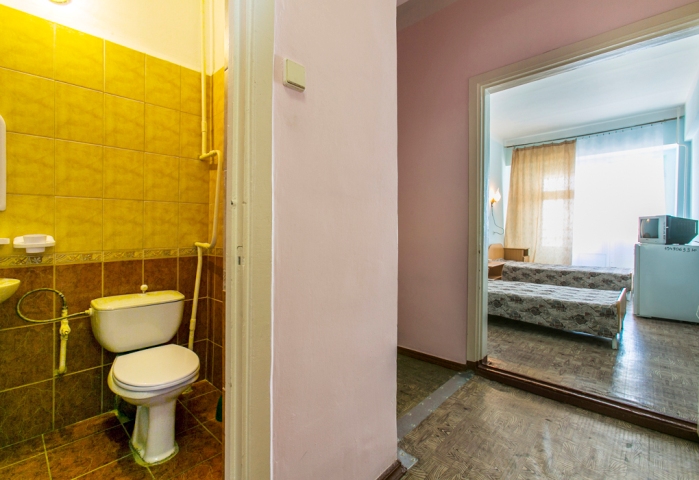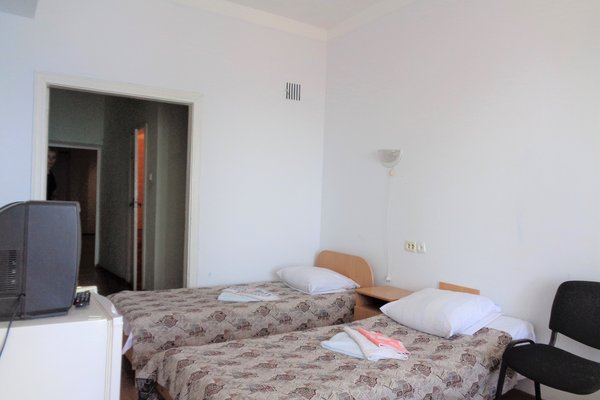 2-х местный улучшенный номер. Площадь: 18 кв. м. В номере: две односпальные кровати, телевизор, холодильник, санузел с душем, балкон. Номера на южную сторону.