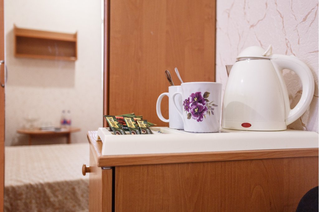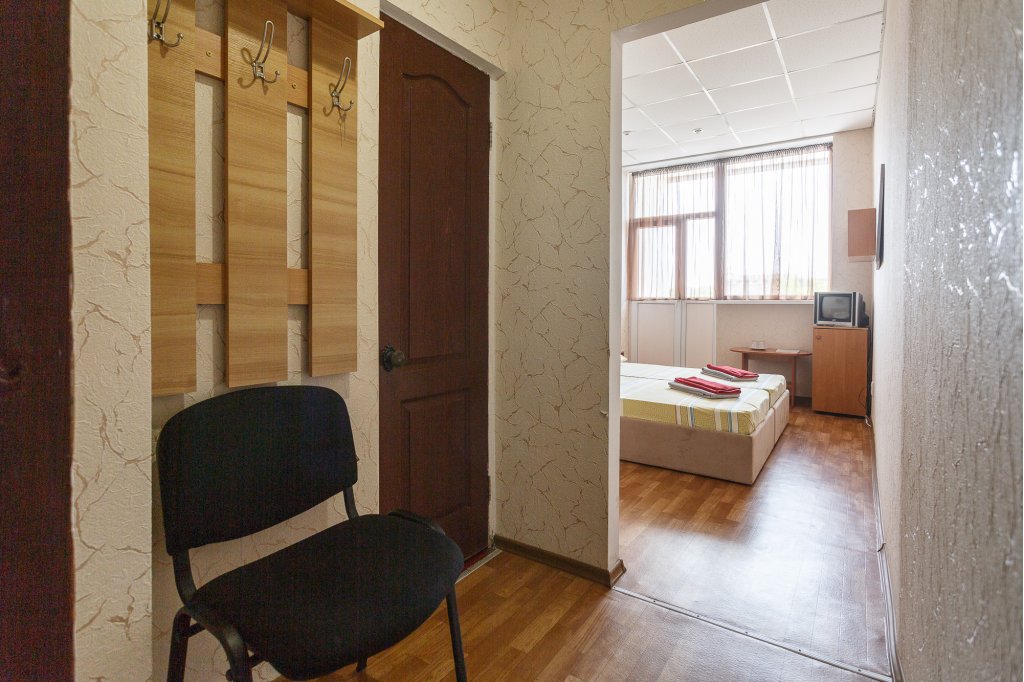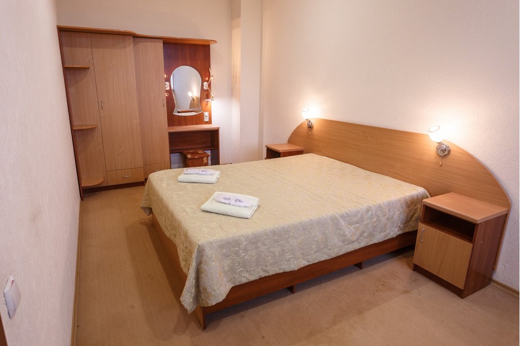 - 2-х местный СТАНДАРТ 1 КАТЕГОРИИ УЛУЧШЕННЫЙ - однокомнатный номер с возможностью разместиться до 3-х человек. В номере: две односпальных кровати, телевизор, холодильник, система климат-контроля, чайные принадлежности (чайник, посуда), шкаф, душ, туалет, умывальник, фен, туалетные принадлежности, балкон.