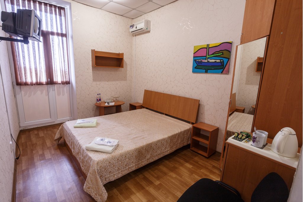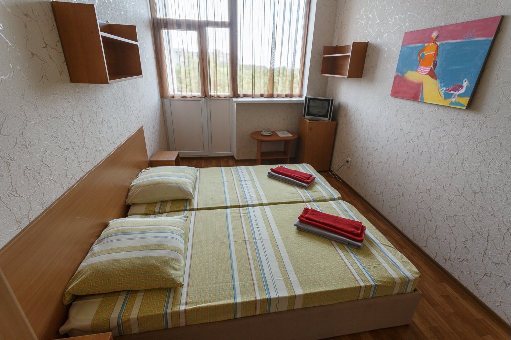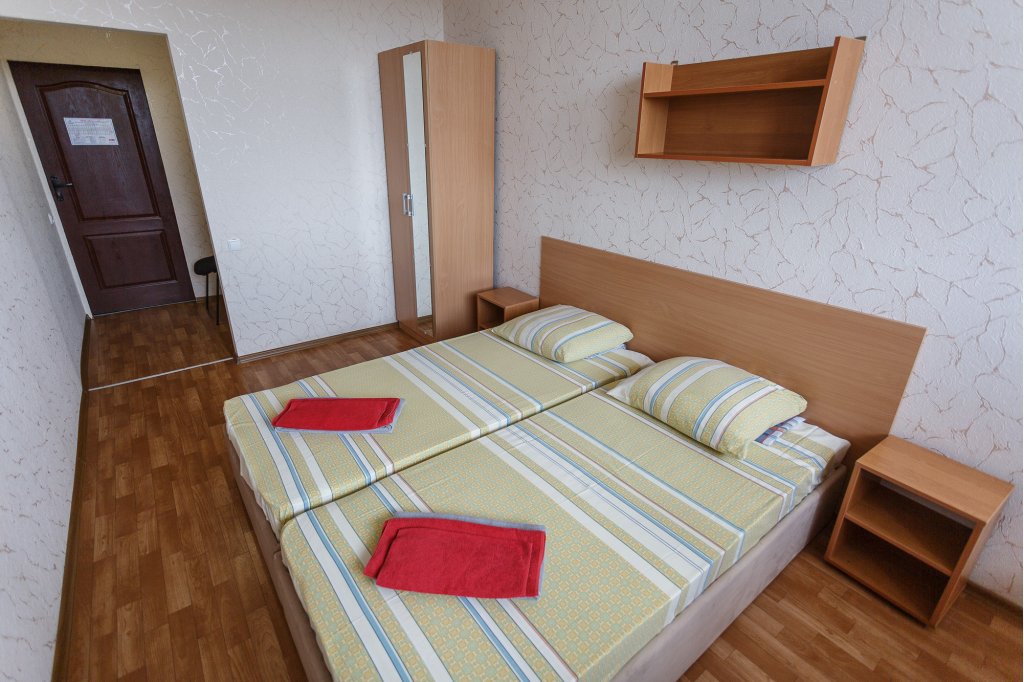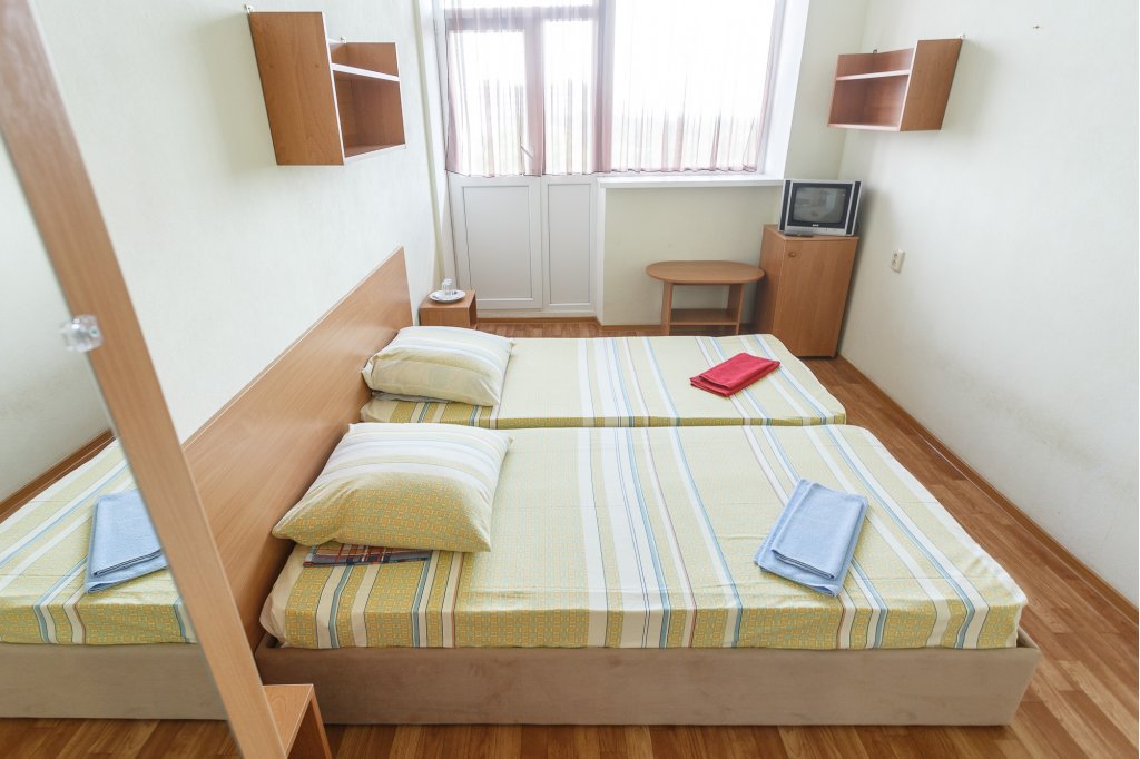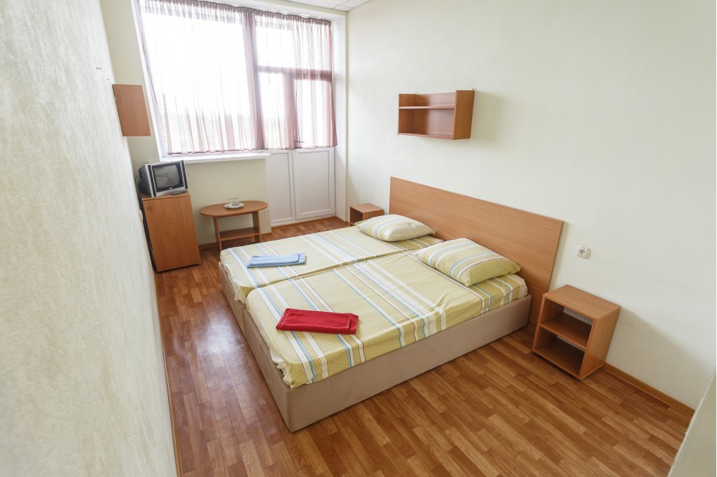 - 2-х местный СТАНДАРТ 1 КАТЕГОРИИ - однокомнатный номер с возможностью разместиться до 3-х человек. В номере: две односпальных кровати, телевизор, холодильник, шкаф, душ, туалет, умывальник, балкон.
