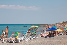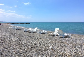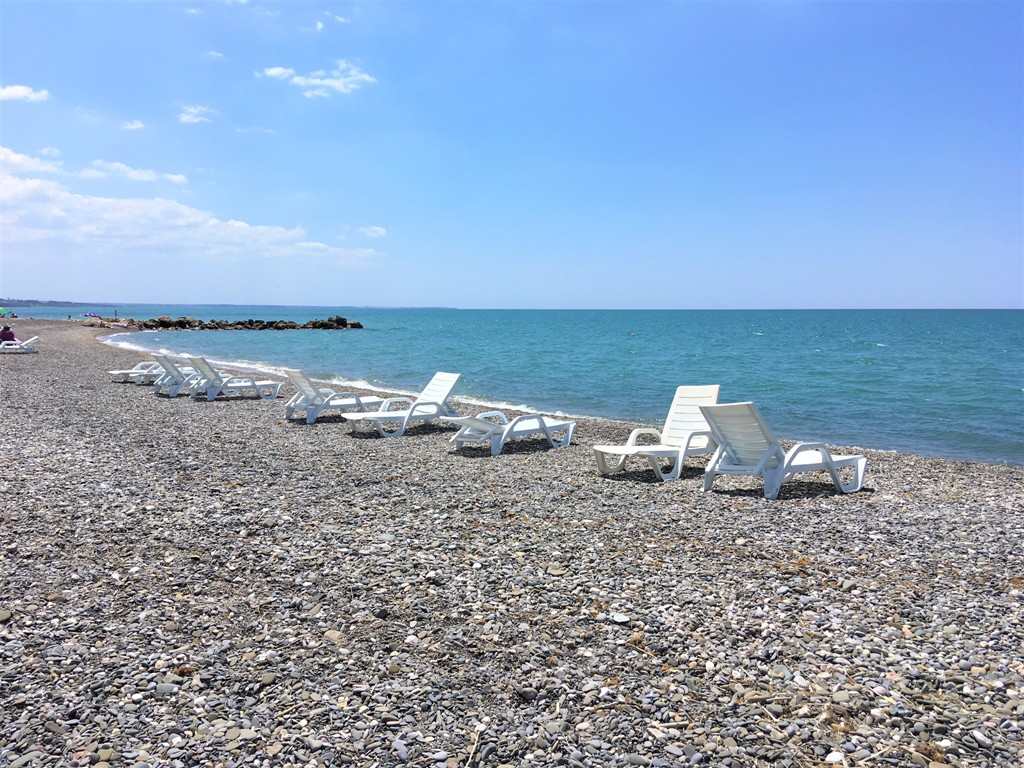 Пляж собственный мелко-галечный с пологим дном. Пляж оборудован спасательным постом, раздевалками, душем с пресной водой, туалетом. Пользование шезлонгами на пляже по карточке гостя - бесплатно.