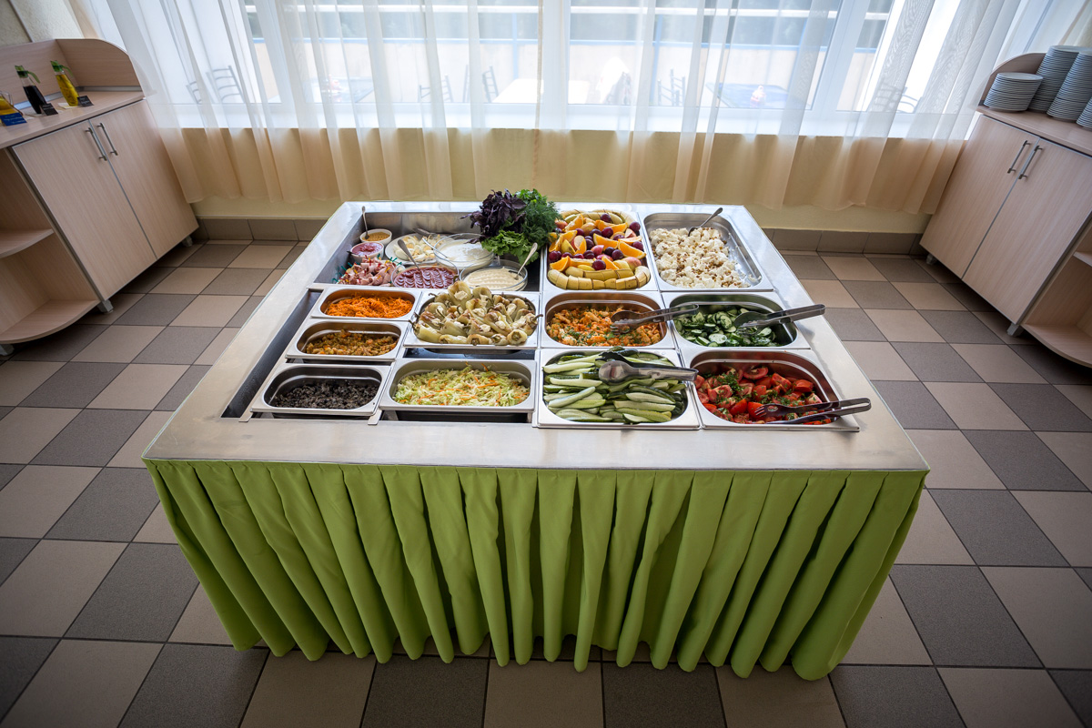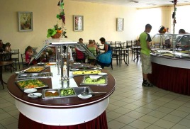 Питание в пансионате "Южный" организовано по системе Шведский стол в двух светлых обеденных залах. Сбалансированное, насыщенное витаминами меню, обеспечивает взрослых и детей вкусной и здоровой пищей, разнообразной выпечкой , обилием зелени и крымских фруктов.