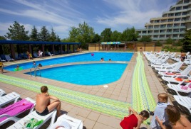 К Вашим услугам шезлонги, лежаки, кабинки для переодевания, бар, площадка для пляжного волейбола. В утреннее время на пляже работают аниматоры - проводят игры с детьми, а взрослых приглашают на дружественные волейбольные матчи. Расстояние до моря - 150 метров.
