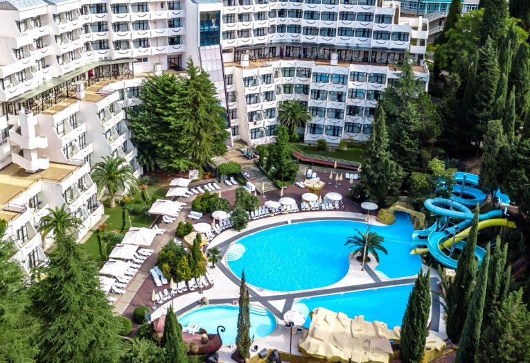 Три 8-этажных жилых корпуса №5, 6, 7 («Парковая зона»), в 700 м. от моря. Лечебный корпус находится отдельно от спальных корпусов. Столовая соединена теплым переходом с корпусом №7.