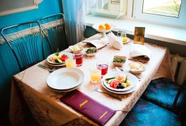 Питание 4-х разовое, по показаниям врача. 6-ти разовое, диетическое питание по предварительному заказу со свободным выбором холодных закусок при организации Салат-бара, вегетарианское питание. В рацион завтрака гостям предлагаются напитки Здоровья – овсяные и отрубные отвары.