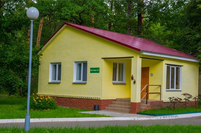 Коттедж №7 – четырехместный трехкомнатный коттедж. Площадь номера: 9-10 м2. Размещение: две кровати в одной спальне, двуспальная кровать во второй спальне + доп. место (диван) в гостиной. В номере: кровати, тумбы, шкаф. На блок: телевизор, холодильник, чайник и санузел.