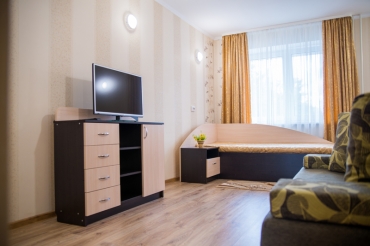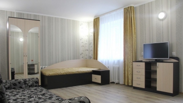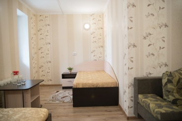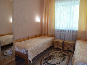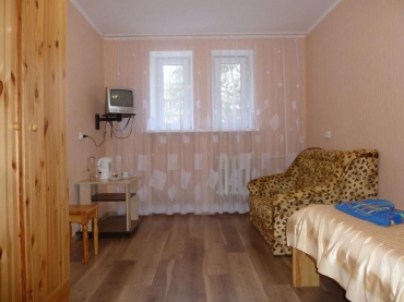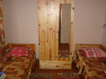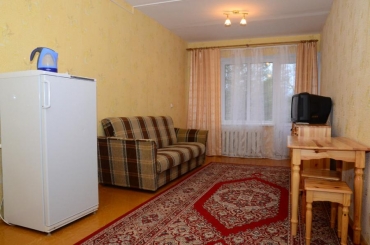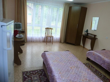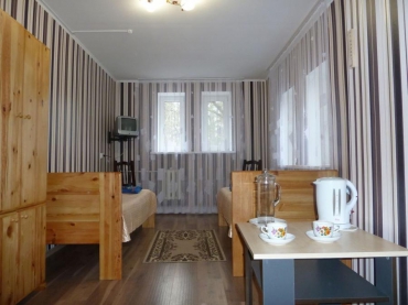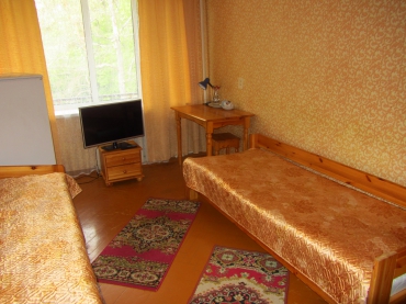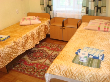 - двуместные однокомнатные. Площадь номера: 25 м2. Размещение: две кровати + доп. место (тахта). В номере: телевизор, чайник, холодильник, санузел.