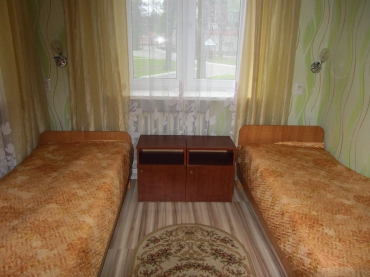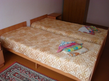 - двухместными однокомнатными. Площадь номера: 15м2. Размещение: двуспальная кровать либо 2 раздельные кровати. В номере: телевизор, чайник, холодильник, санузел.