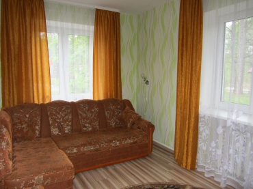 Летние домики (4 шт) – двухместные однокомнатные номера. Площадь номера: 17 м2. Размещение: две кровати + доп. место (диван) в гостиной.