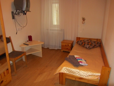 - одноместные в блоке (1+2). Площадь номера: 15 м2. Размещение: односпальная кровать + доп. место (тахта). В номере: телевизор, чайник, холодильник.